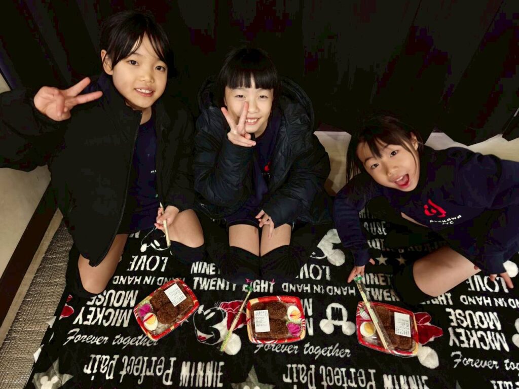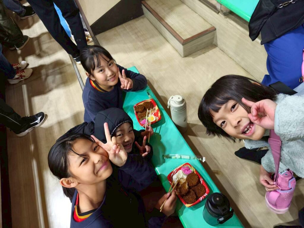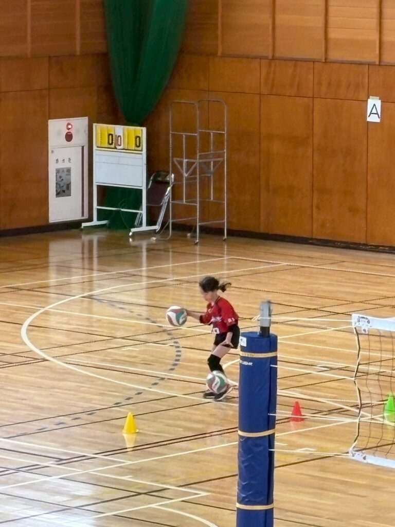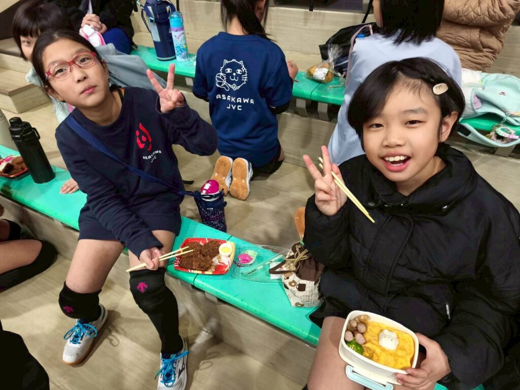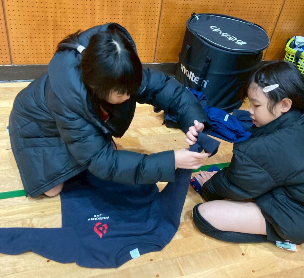 試合の合間に、みんなのトレーナーを畳んでくれている子がいました。