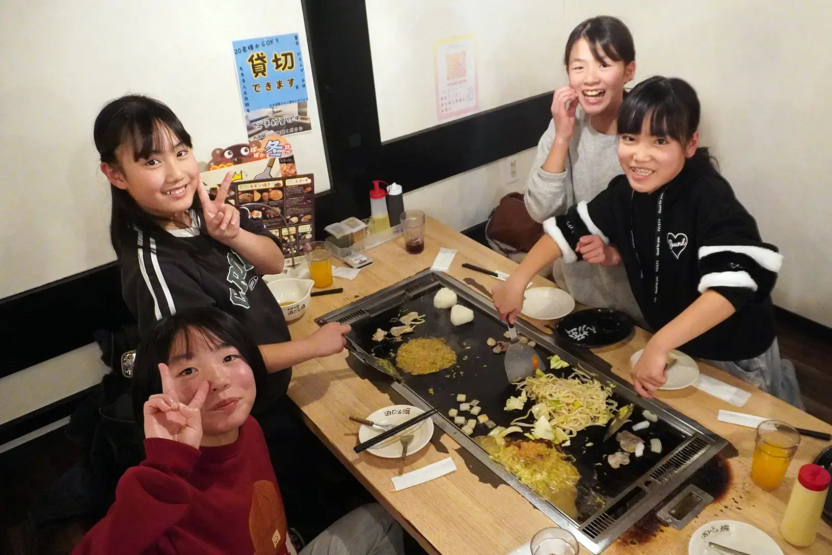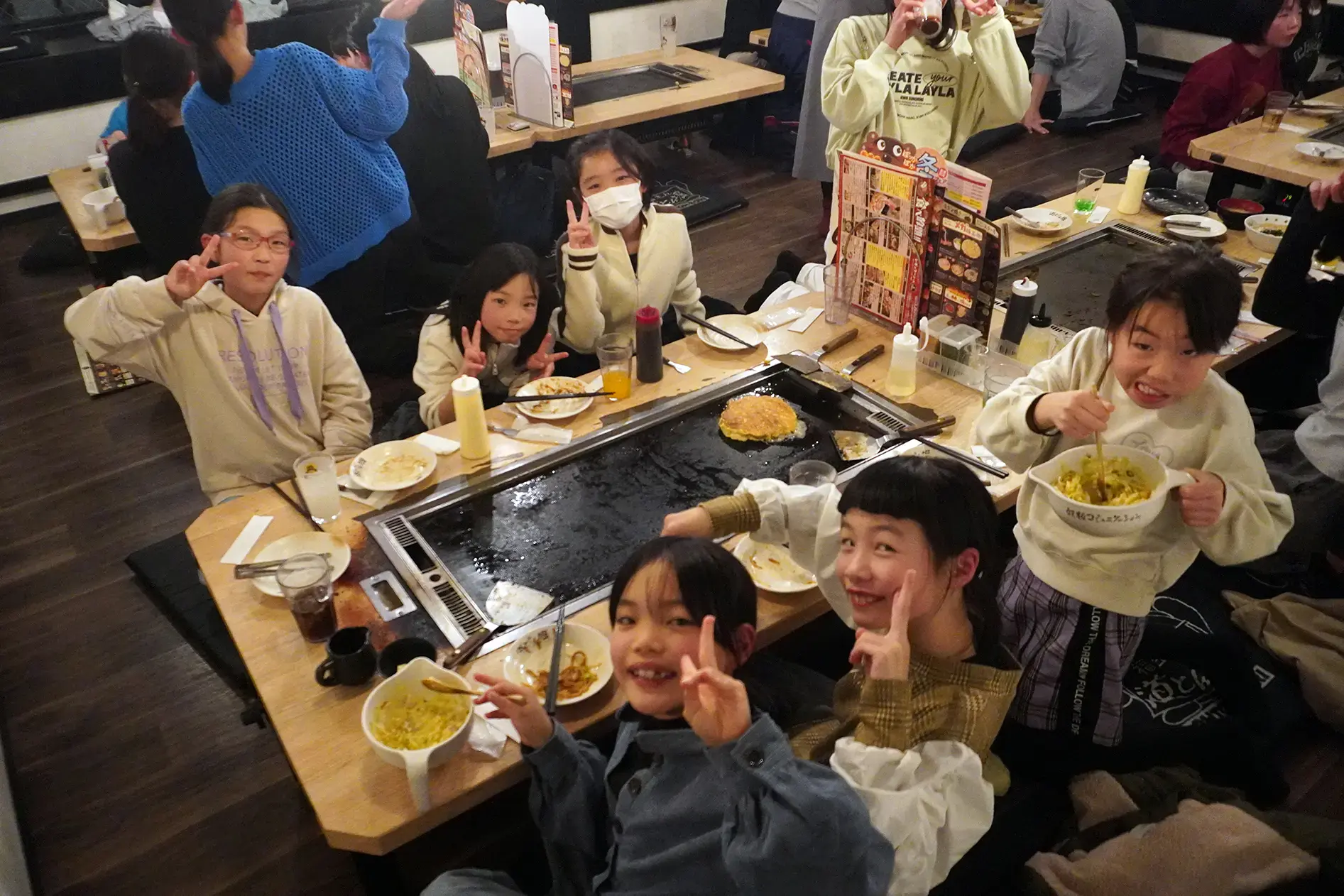 みんなで、お好み焼き&もんじゃ焼きを食べに行きました~。